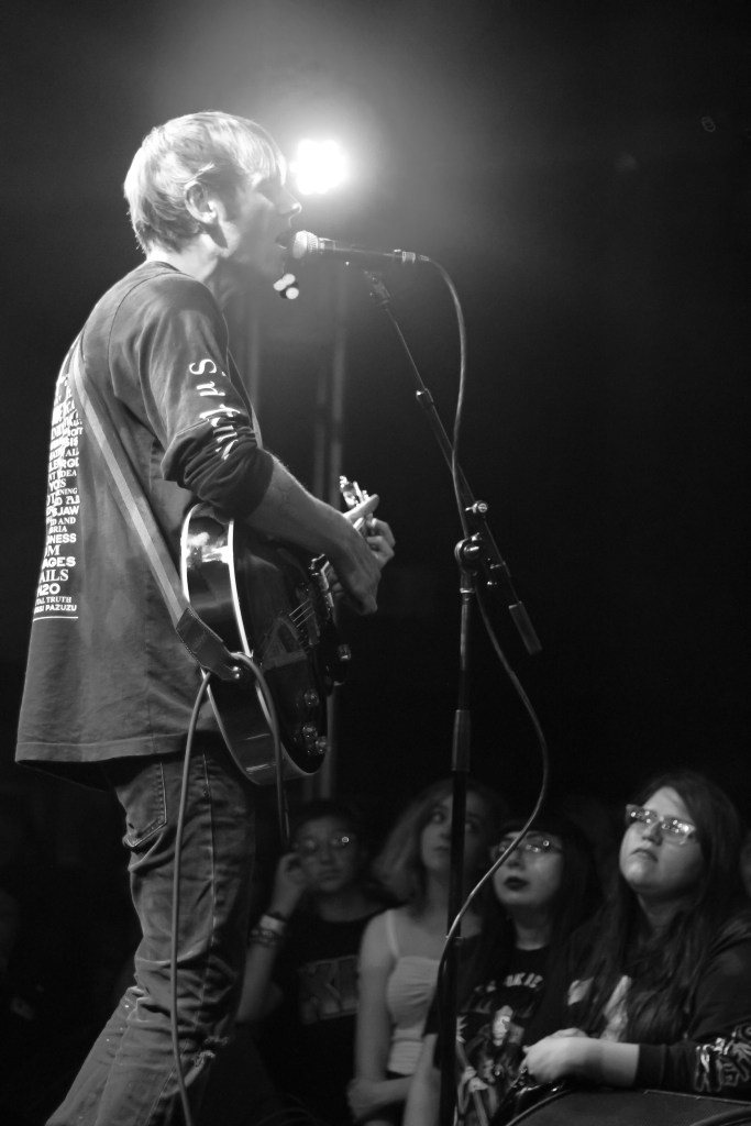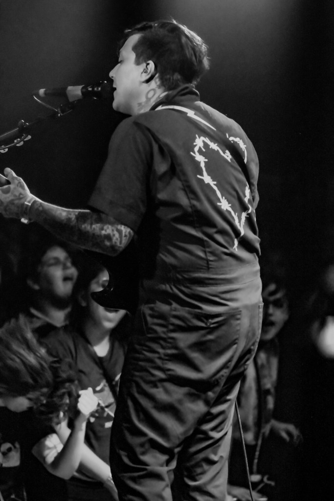 The first act onstage was Low Speech, their opening set was loud, fun yet quite melodic. They got the crowd all warmed up and singing along in a short amount of time. The second act of the night was Geoff Rickly, whom you might know from the band Thursday. It was just him and a guitar that was hooked up to a laptop. The crowd was super into it singing along to every word. Geoff’s vocals were loud, clear and rich. His storytelling in song and his storytelling just talking was on point. As was his guitar work, but that’s what 20 years of touring and playing in bands will do. He regaled the audience with stories of working with Frank and his former bandmates Gerard and Mikey Way on the first MCR album. His crowd interaction was just enough.