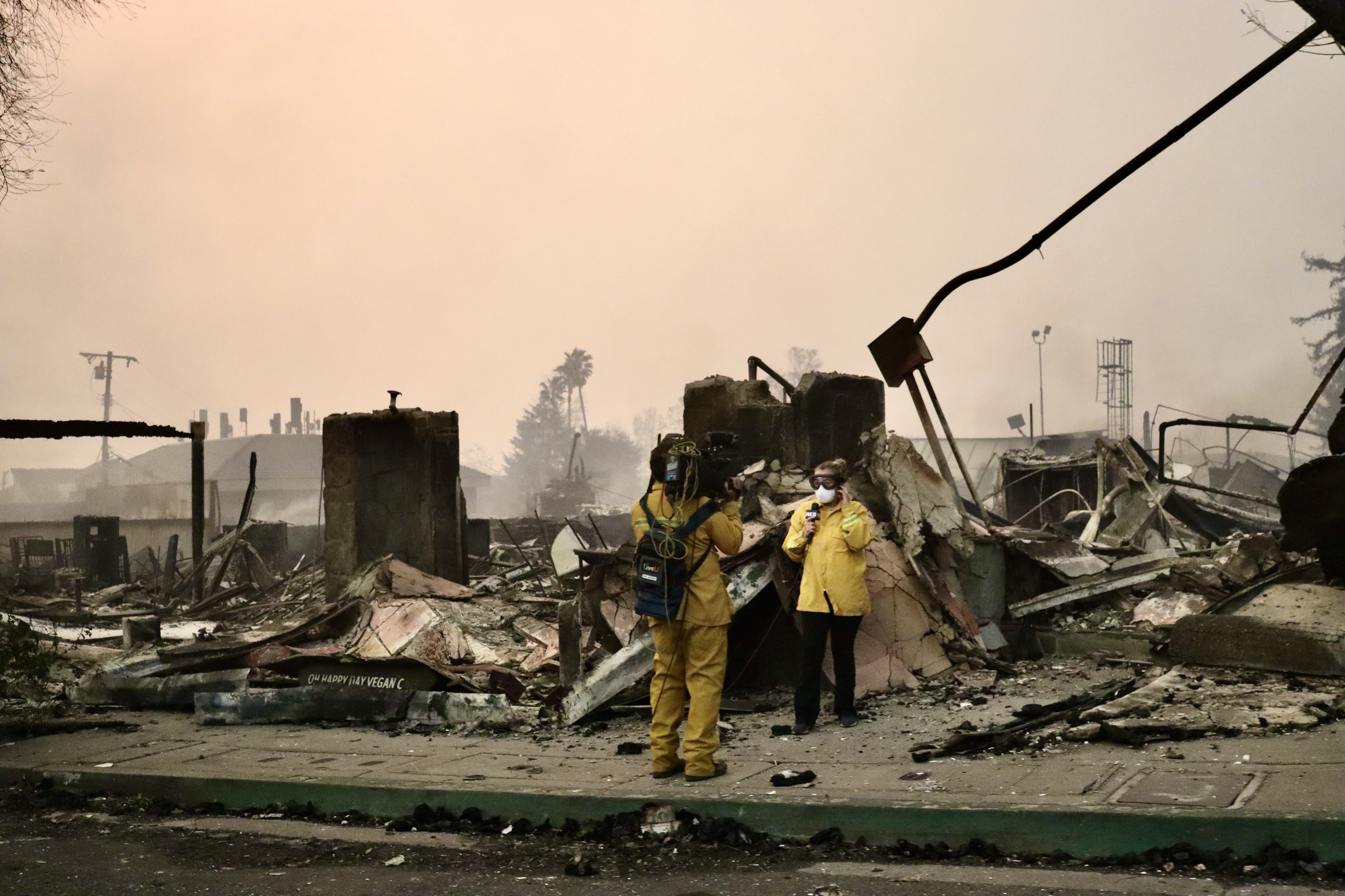 It felt more like bittersweet relief and gratitude and guilt. The four houses running parallel to ours were demolished and still on fire. One of the houses wound up burning down and into a part of our retaining wall. That same neighbor was also out trying to do what he could to help out his house, but I could tell he was shell-shocked. Suddenly, two firefighters appeared out of nowhere. They were walking around looking for buildings to try and save. I called out to them to see if they would help us out. There wasn’t any water in the tap or house, but we had a pool in the backyard, so we got water there.